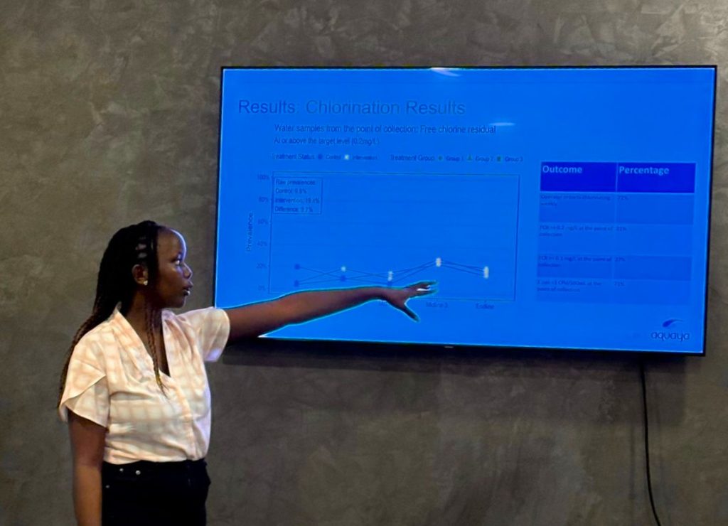 Speaking during the engagement, Aquaya Research Officer Faith Chepng’eno emphasised the importance of making water quality monitoring a routine practice in rural water schemes.